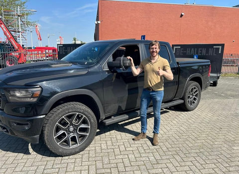 Opleiding in auto’s zoals de Dodge RAM 1500, Mercedes Viano V6 en Audi e-tron Q8, met aanhangwagens voorzien van camera’s voor extra veiligheid bij aankoppelen en achteruitrijden.